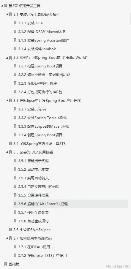 详细介绍开发工具IDEA、Eclipse、STS,以及流行插件的安装和配置。本章将利用IDEA开发、运行和打包发布第一个Spring Boot应用程序"Hello World"。在介绍IDEA实用技能的同时,还会详细比较IDEA和Eclipse的区别,以及如何在各个开发工具中使用本书的随书源代码。