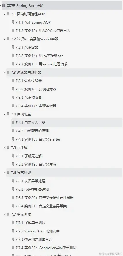 介绍AOP、loC、Servlet 容器;然后深入讲解自动配置原理、自定义Starter、自定义注解;最后讲解异常的处理,以及如何进行单元测试。