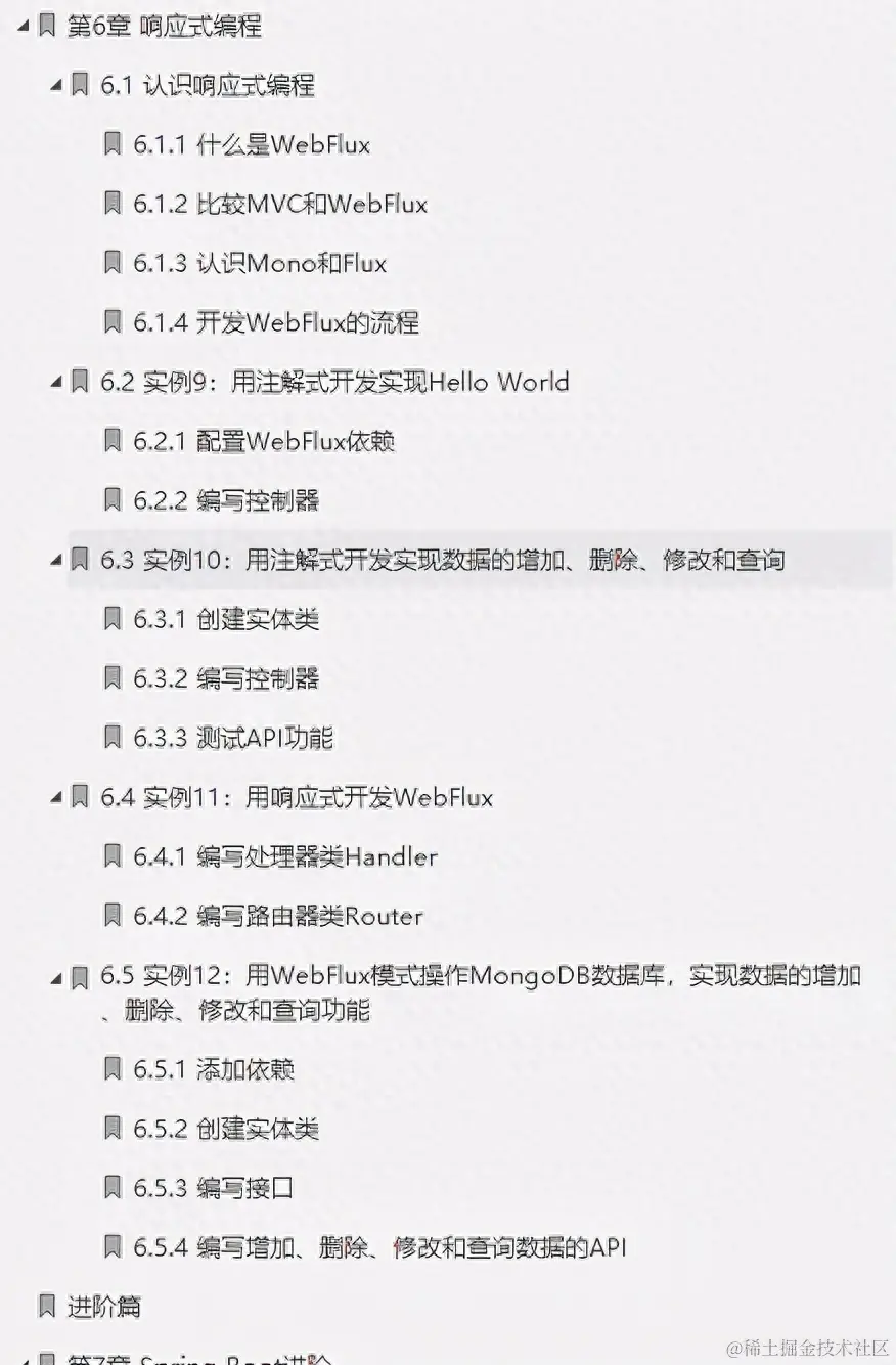 首先介绍响应式编程的基本概念,并对比分析MVC和WebFlux模式,用实例讲解如何进行WebFlux的开发; 然后讲解用MVC及响应式开发方式开发WebFlux的方法;最后用WebFlux模式结合MongoDB数据库实现数据的增加、删除、修改和查询。