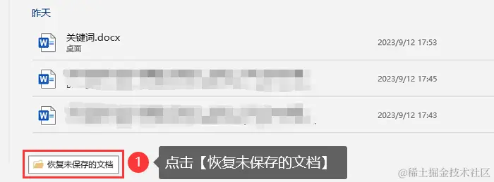 3.点击下方 【恢复未保存的文档】 。