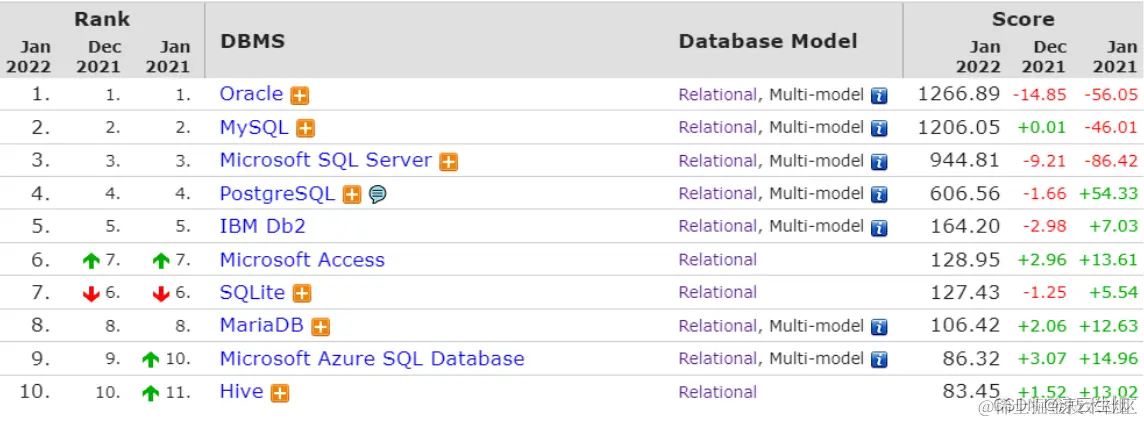 关系型数据库有哪些: