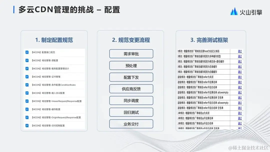 最后在交付之前,会进行一次完整的回归测试。这些测试需要是配置项级别的,比如修改源站,我们要确认回源相关的响应里面有没有新源站的信息,如果是修改访问控制规则,我们要确认对应条件的访问是不是真的被拦截了或是被放行了。这些回归做完之后,意味着我们这次变更从用户侧的访问效果应该是真的达成预期了,最后才会通知业务方这个变更完成