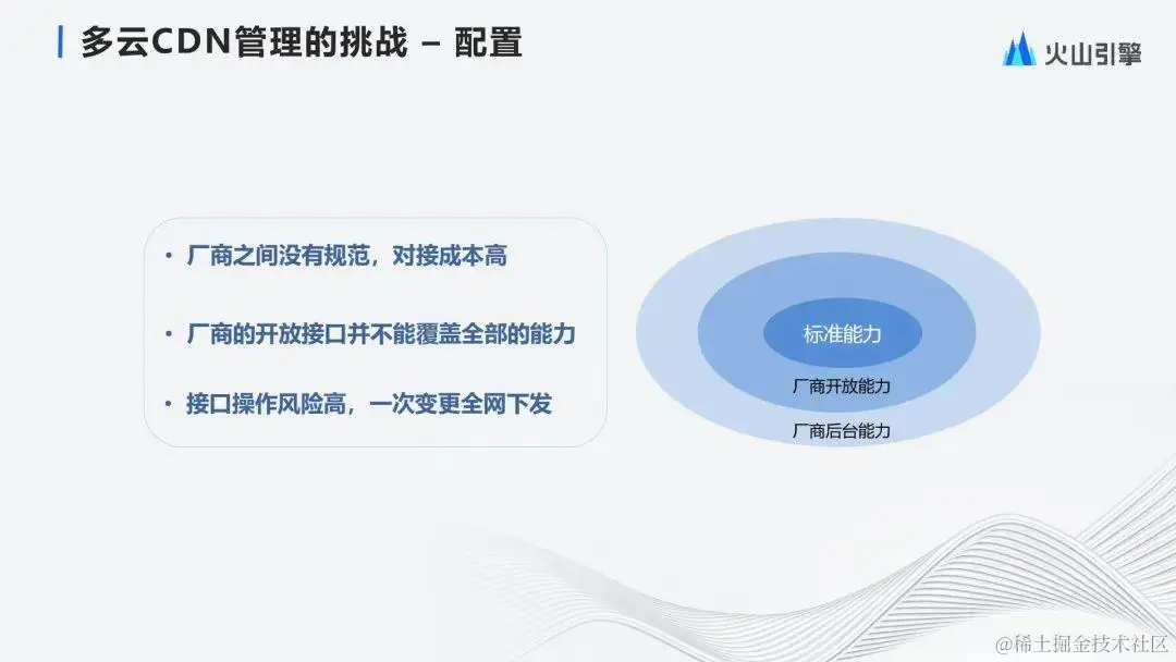 使用多个CDN厂商的情况在行业内是一种普遍的现象。我们一开始对于对接多厂商的认识是打通API,向上统一封装。但是在真正实践时,我们发现事情的复杂度比预期要高很多。