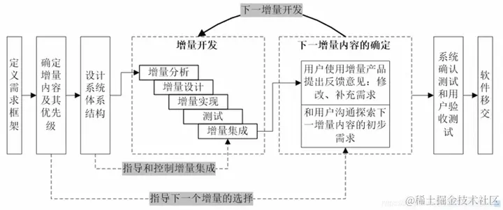 增量模型又称演化模型、渐进模型,增量模型是把待开发的软件系统模块化,将每个模块作为一个增量组件,从而分批次地分析、设计、编码和测试这些增量组件,运用增量模型的软件开发过程是递增式的过程。相对于瀑布模型而言,采用增量模型进行开发,开发人员不需要一次性地把整个软件产品提交给用户,而是可以分批次进行,而每次开过过程又可以作为一次迭代开发。增量模型对软件设计要求非常高,整个体系架构需要具备开放性与稳定性,能够顺利的不断集成各种增量组件。