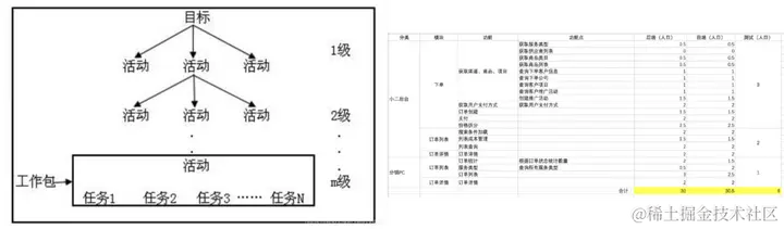 在任何项目中,工作分解都是重中之重。这个过程决定项目的成功程度、资源使用情况、风险等。在软件项目中,常用方式是根据功能模块来做工作分解,把模块拆分成任务,再把任务拆解成具体的一项工作,安排到每个人的日常工作上来,这样一个过程就是工作分解结构(简称 WBS)。在软件项目中除了用功能模块来拆分外,还可以按照部门、职能、地域、实施过程等来拆解。具体项目管理过程中,要多尝试几种分解方式,然后找到资源、成本、效率的最佳平衡点。