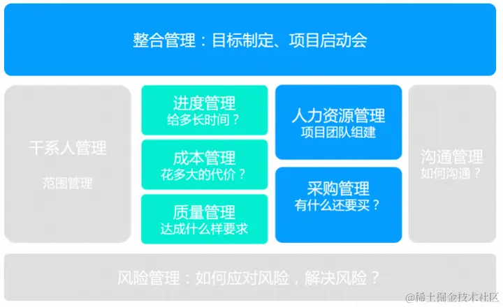 正如我们所知,项目管理并不局限于软件行业,针对软件行业,整合管理、干系人管理、进度管理、风险管理、沟通管理是特别重要的领域知识,需要重点掌握,针对这些重点领域知识,结合项目实际管 (碰) 理 (到) 经 (的) 验 (坑),后面会做一些更细致的分享。