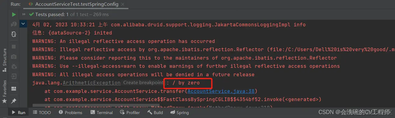 OK,可以看到确实出现异常中断了,因此测试成功,Spring专栏也到此告一段落啦 ,接下来就开启了SpringMVC框架学习。希望大家可以持续关注啊!!!