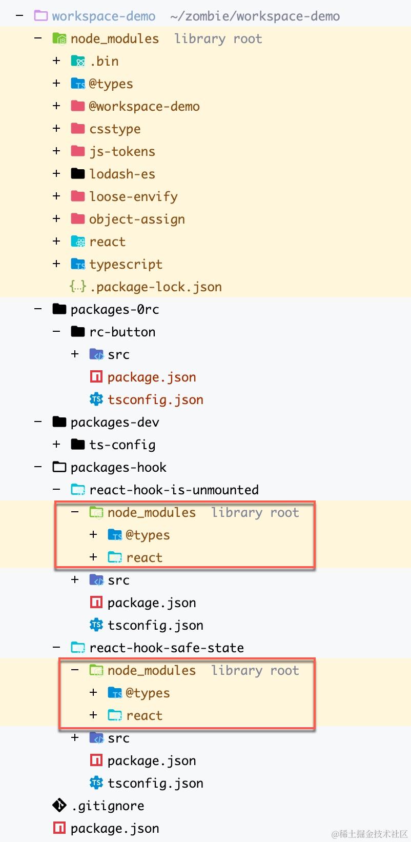 我们已经知道 Workspace 的每个 package 都有自己完整的 node_modules,只是里边的包都是根 node_modules/.pnpm 下对应的软链接。由于 .pnpm 下的依赖项会根据版本平铺,因此可以想到 pnpm 下的效果,也就没有必要改名测试了。