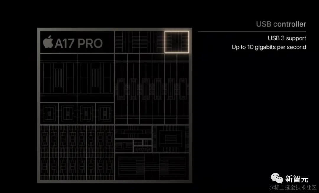 为了支持全新的USB-C端口,苹果在A17 Pro中添加了新的USB控制器,解锁了前所未有的工作流程。