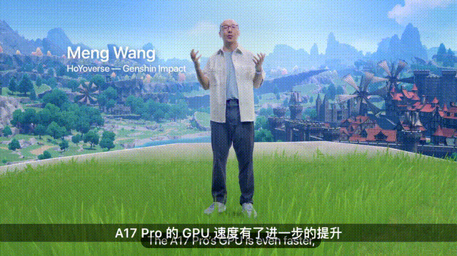 讲到A17 Pro对原神和崩坏3的加持时,甚至史无前例地蹦出了一段中文,中国玩家排面瞬间拉满。