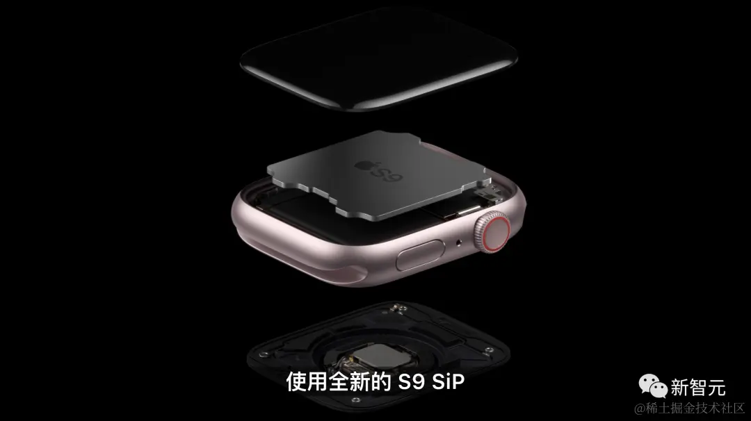 在处理器上,Apple Watch S9采用了全新的苹果芯片S9 SiP,配有56亿个晶体管,数量比S8多出了60%,而且GPU性能提升最快可达30%。