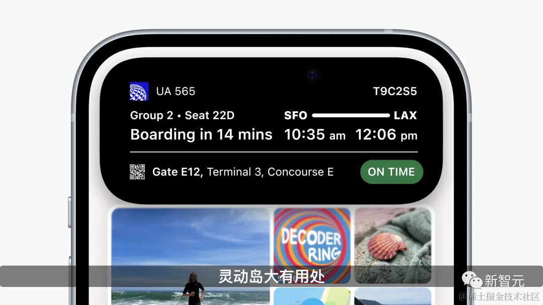 通过灵动岛,用户不仅可以轻松控制音乐,还可以显示额外的特殊信息,比如等飞机时的登机口等等。