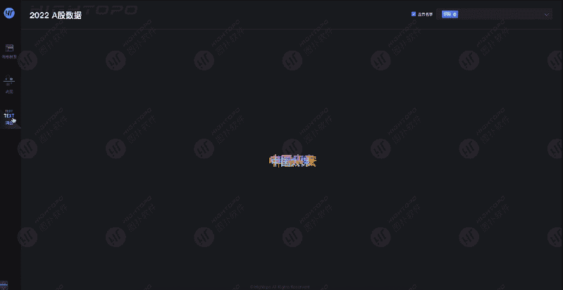 图扑将获取到的股市数据文本中出现频率较高的“关键词”予以视觉化展现,以不同大小、颜色等视觉效果简洁明了的呈现。还利用 HT 一些动画效果来增强词云的交互性和趣味性,例如鼠标悬停在公司名称上时会有一个凸显的动画效果。
