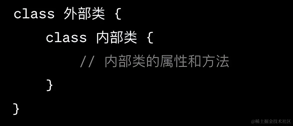 内部类是定义在其他类内部的类,可以访问外部类的属性和方法。通过内部类,可以实现一种特殊形式的继承。例如:
