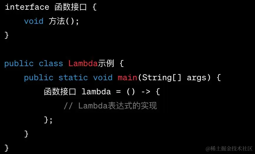 Lambda表达式可以视作一种轻量级的继承方式,用于实现函数接口的方法。