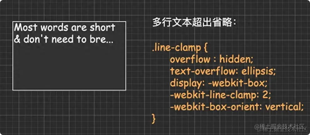 另外他还对 iOS/Safari 做了兼容处理,感兴趣的可以去阅读下:CSS 整块文本溢出省略特性探究。