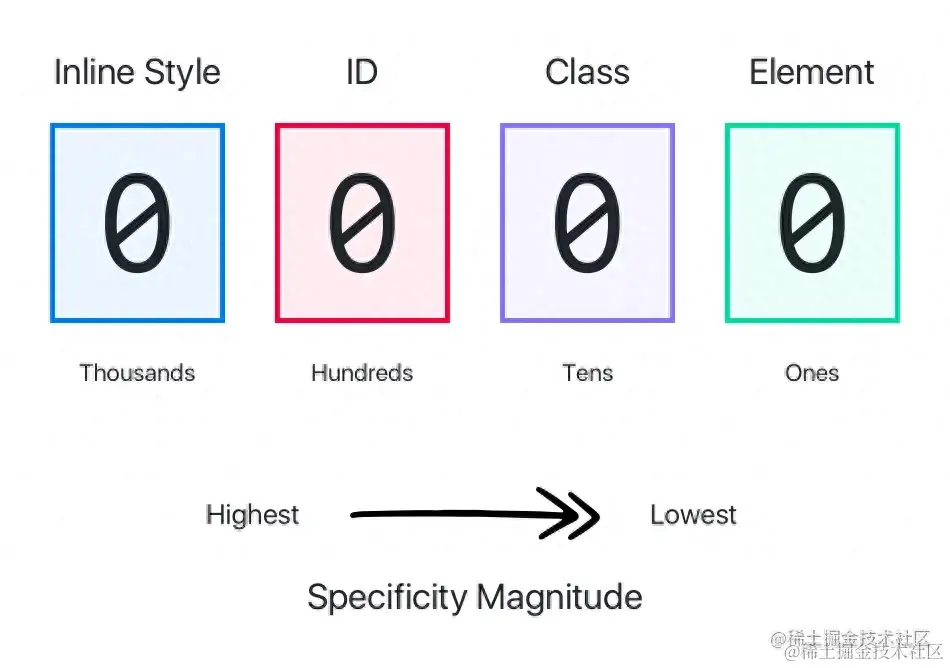 针对不同源的样式,将按照如下的顺序进行层叠,越往下优先级越高:
