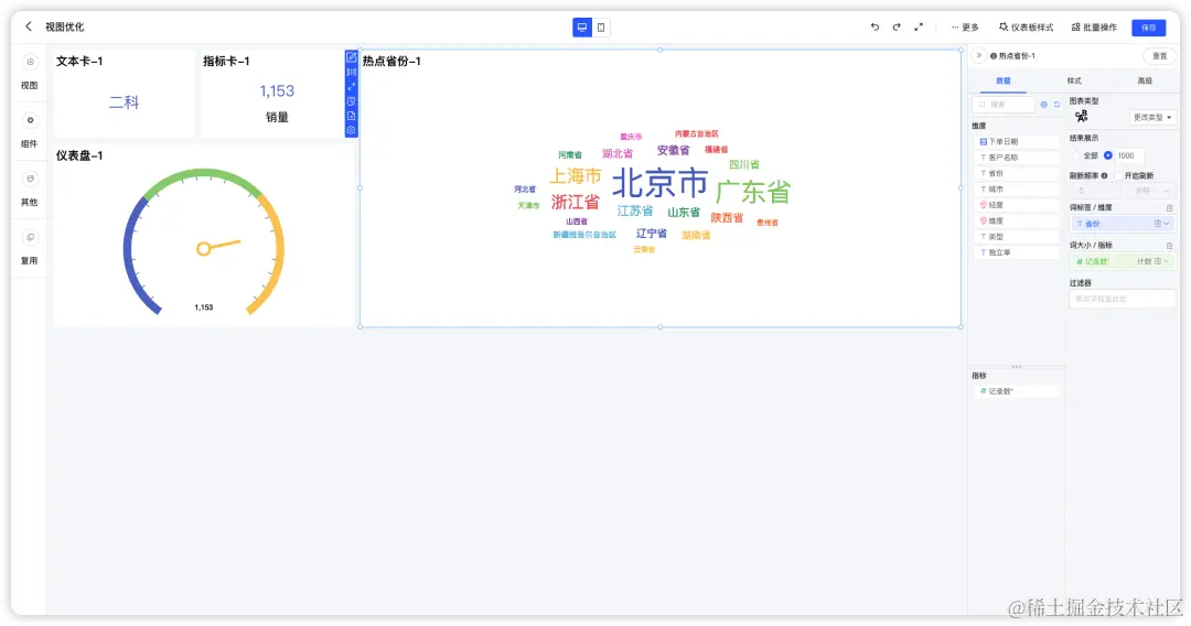 ■ 视图:优化仪表盘、词云图、文本卡、指标卡的使用