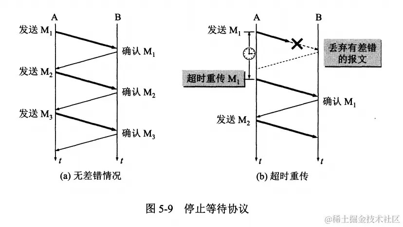 “停止等待”:每发送完一个分组就停止发送,等待对方确认。在收到确认后再发送下一个分组。