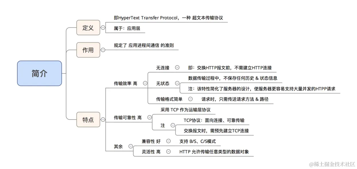 超文本传送协议HTTP,定义了浏览器(即万维网客户进程)怎样向万维网服务器请求万维网文档, 以及服务器怎样把文档传送给浏览器。从层次的角度看,HTTP 是面向事务的(transaction- oriented)应用层协议。