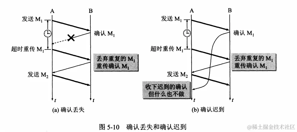 - 如果发送方在发送后一段时间之内没有收到确认帧,它通常会重新发送。