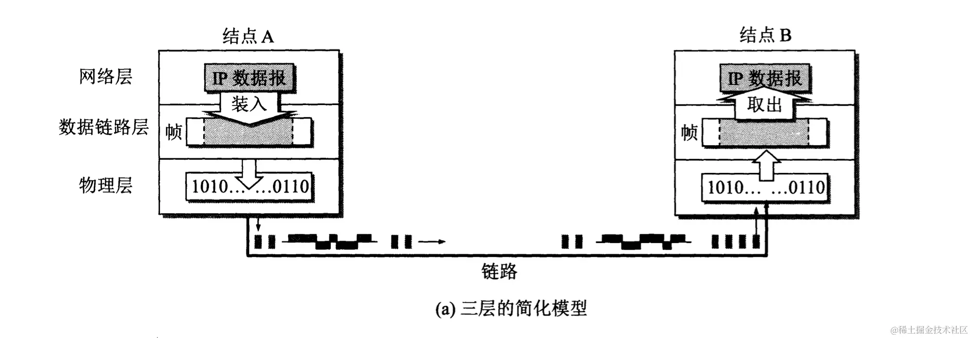 - 结点 A 把封装好的帧发送给结点 B 的数据链路层。