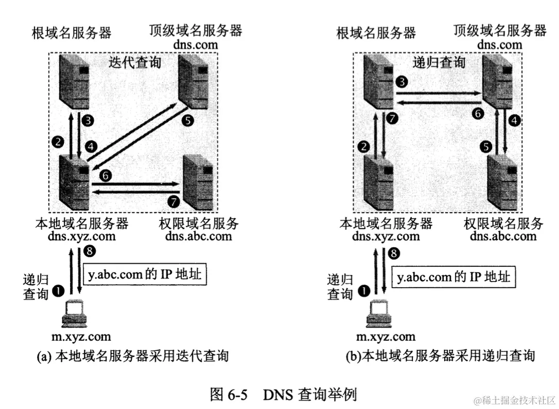 本地域名服务器向根域名服务器的查询通常是采用迭代查询(iterative query)