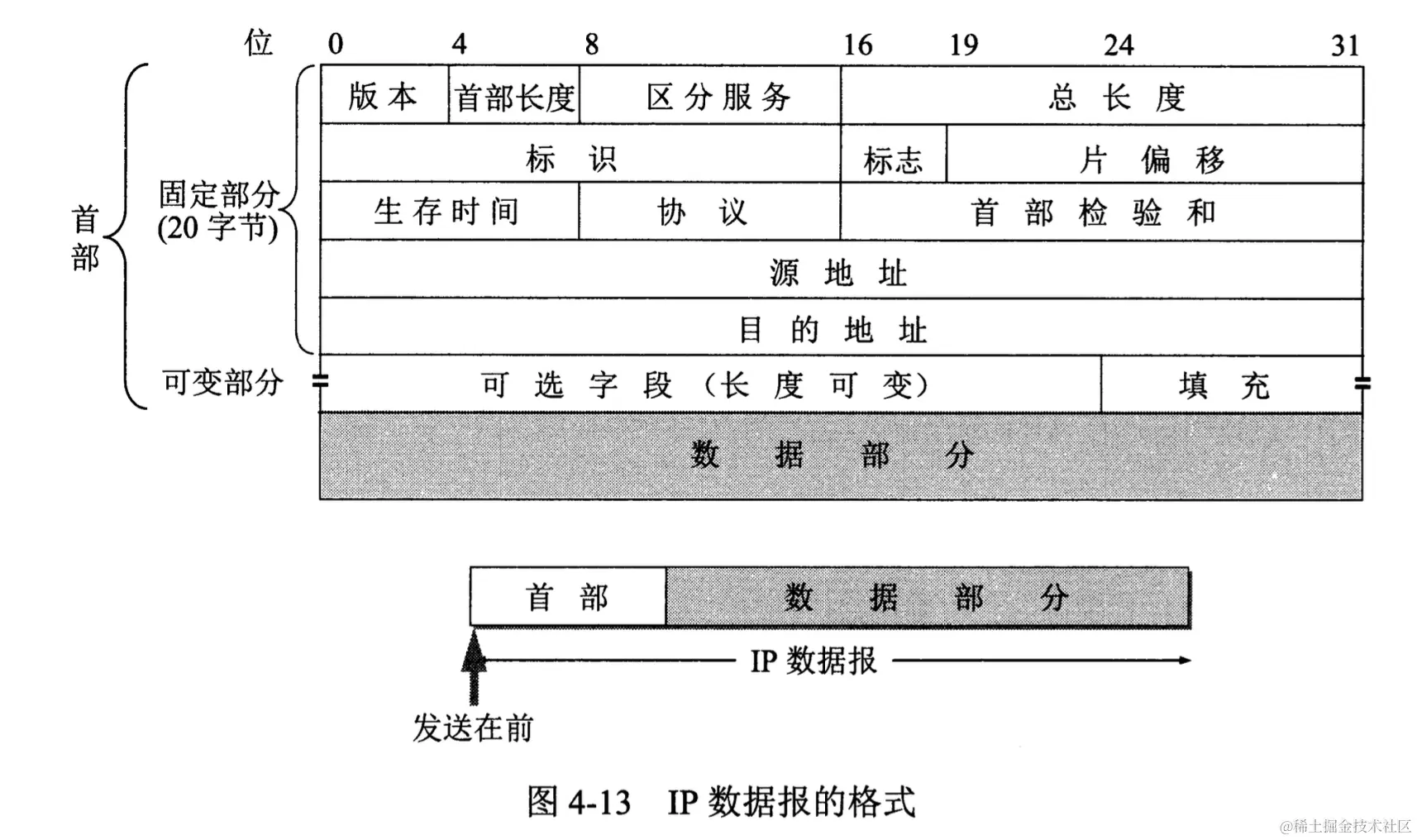 网络层数据报(IP数据报:Packet)由首部、数据2部分组成。