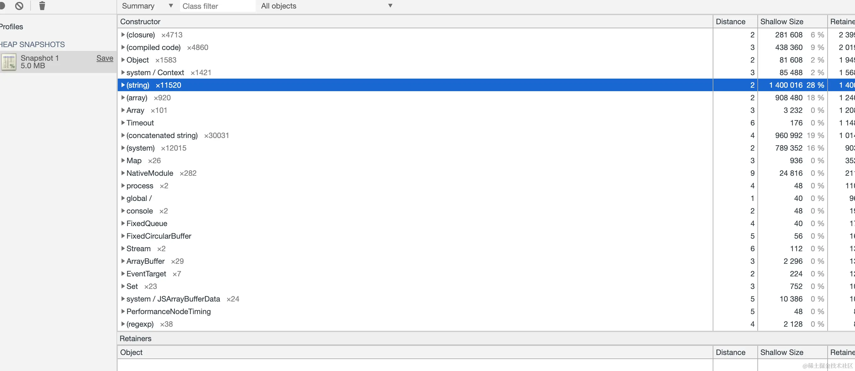 我们排查问题都会选择堆内存的快照,点击take snapshot