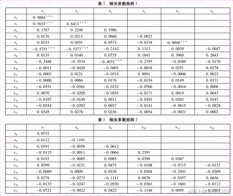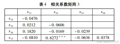在对企业财务风险指标进行回归分析之前,考虑到不同财务指标可能存在多重共线性,因此需要使用相关系数判定这 17 个变量的相关性。