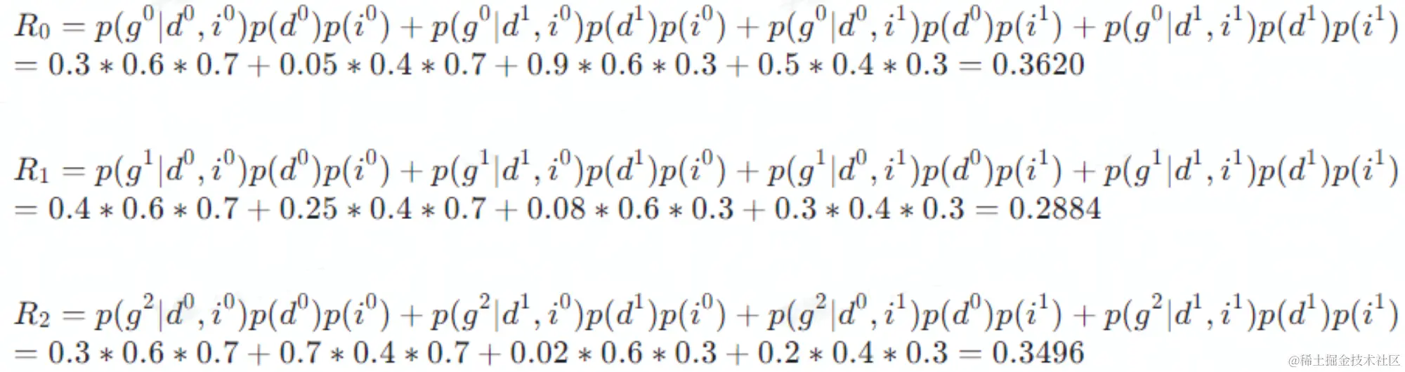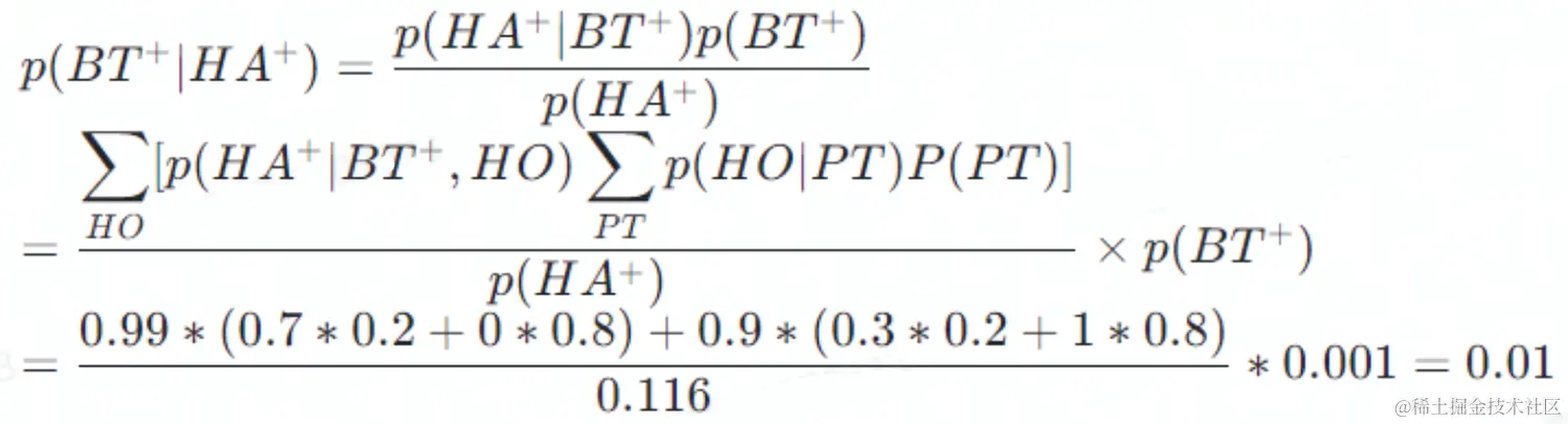 结合贝叶斯公式,我们可以得到如下概率公式: