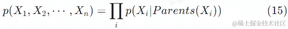 不失一般性,令图 G 为定义在 上的一个贝叶斯网络,其联合概率分布可以表示为各个节点的条件概率分布的乘积