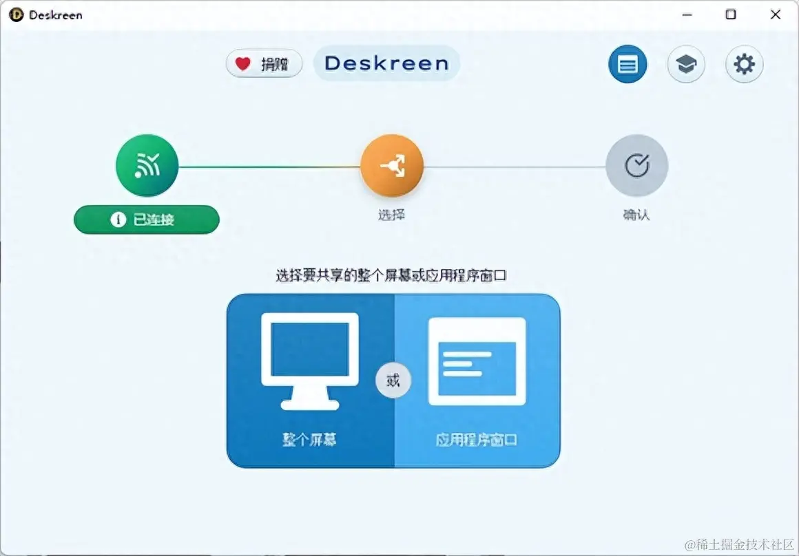 Deskreen是一款屏幕共享工具,可以让你把任何设备变成你电脑的第二个显示器。Deskreen使用了WebRTC技术,可以通过浏览器实现无线连接,并且保证了低延迟和高画质。Deskreen支持多种设备,如手机、平板、电视等,并且支持多种模式,如全屏模式、窗口模式、镜像模式等。Deskreen还支持多种语言,并且有一个简单易用的界面。