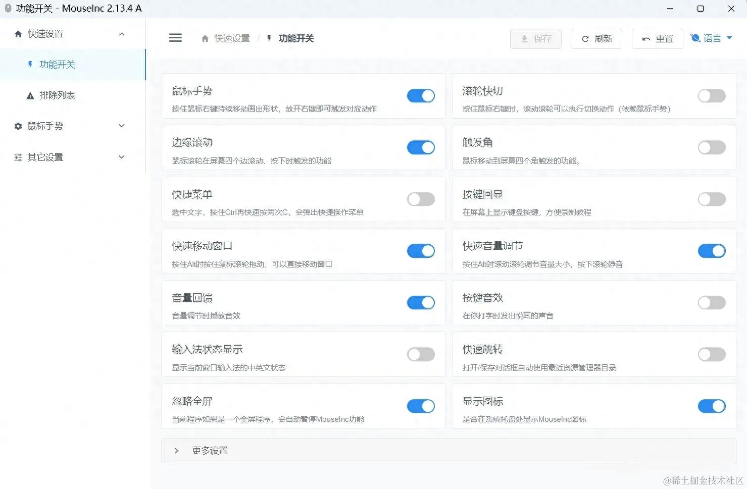 MouseInc 是一款由知名的浏览器优化大神开发的系统全局鼠标手势软件,功能非常强大。和大多数的手势软件一样,可自定义鼠标手势,来完成各种常用软件的快速操作。通过按住右键,画出相应手势,来实现复制粘贴,删除关闭等功能。MouseInc 还支持很多增强辅助功能,如窗口管理、文本翻译、屏幕截图、音量调节等。