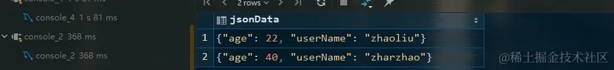 where sel.jsonData -> '$.userName' like '%zhao%';
