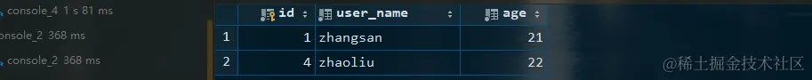 insert into user_info (user_name, age) values ('zhaoliu',22);