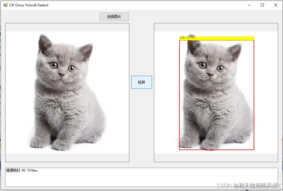 textBox1.Text = "推理耗时:" + (dt2 - dt1).TotalMilliseconds + "ms"