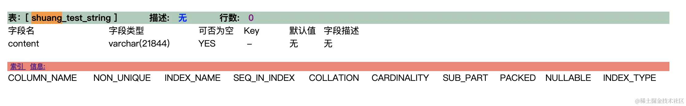 <1>.先将content字段设为varchar(255),则此字段只能最多存储255个字符数