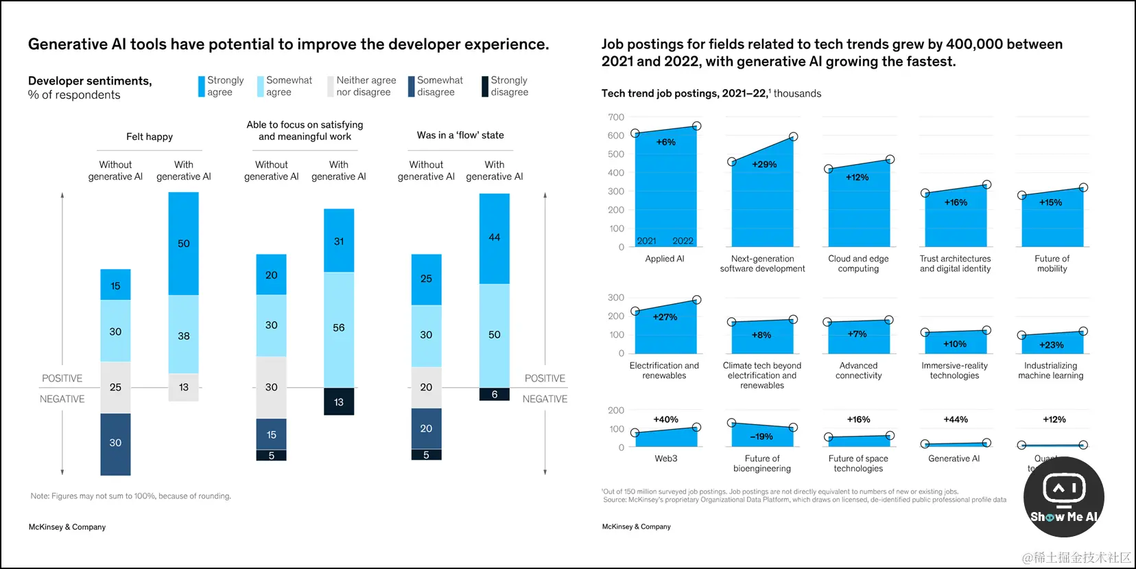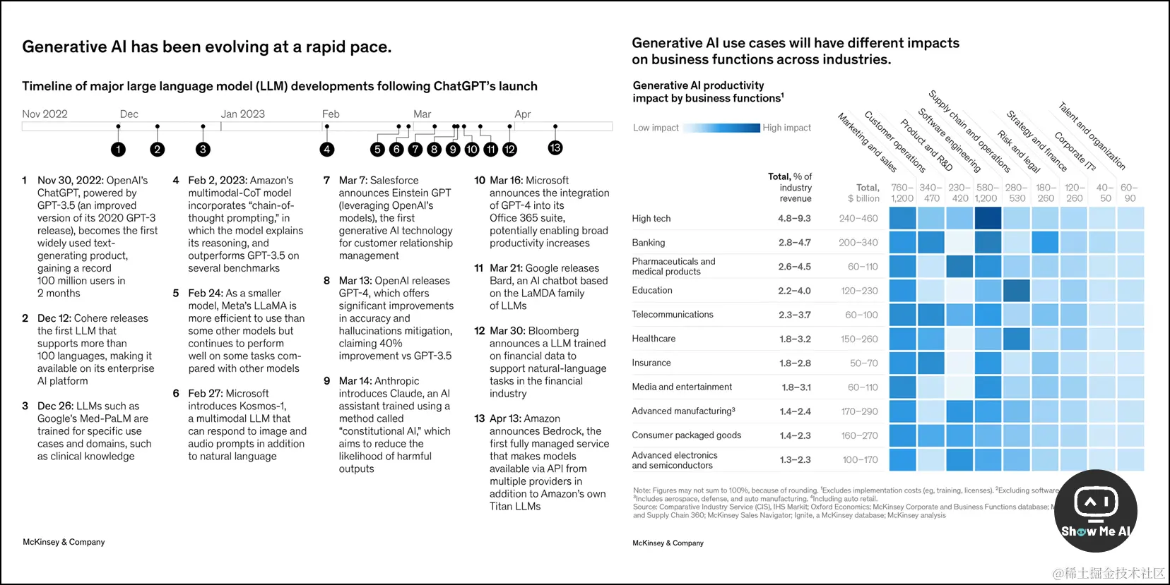 这是麦肯锡在8月底发布的一篇博文,切入视角非常有意思!作者回顾了麦肯锡在生成式AI爆发早期 (今年4月左右) 的一些报告和结论。