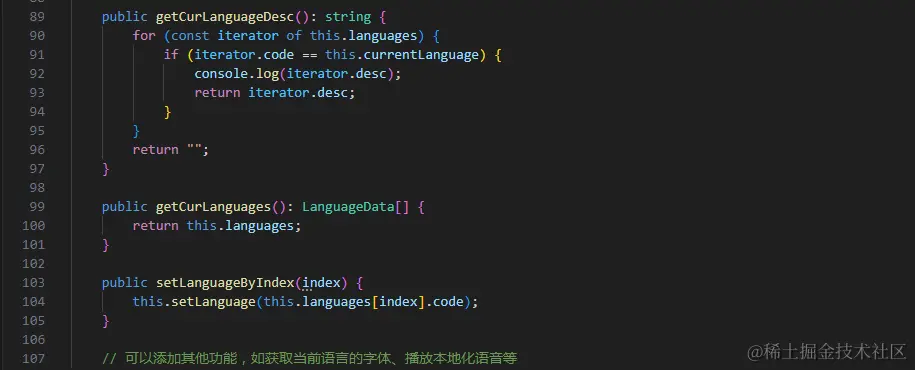 包括获取当前语言的描述,获取当前语言,通过下标去设置当前语言等等。