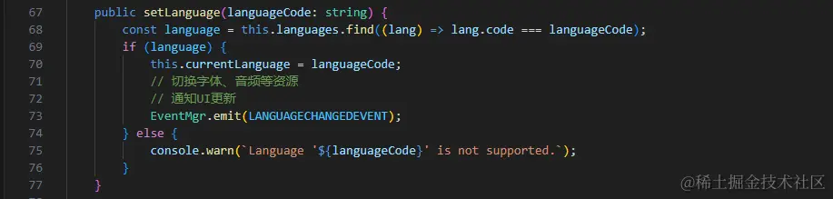 切换当前语言,并且通过事件管理器派发切换语言事件,UI通过订阅该事件去进行修改语言处理。