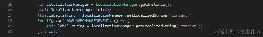 通过getLocalizedString去获取语言配置,管理器会根据当前语言返回正确的语言配置。