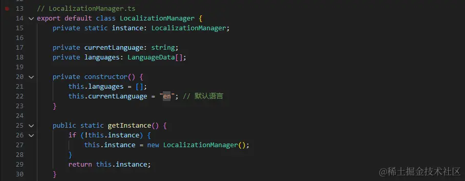 构建LocalizationManager单例类。其中currentLanguage是当前语言。languages是当前支持的所有语言。