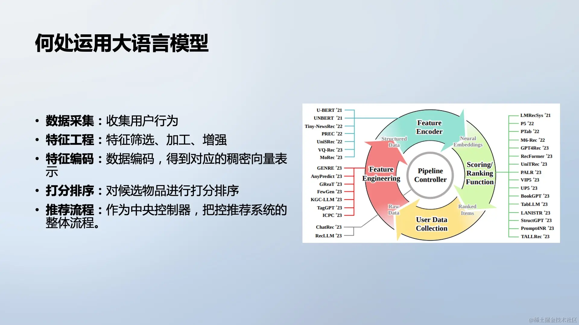 此外,还可以构建以大语言模型为核心的推荐系统流程控制器,调度各个阶段的运行。