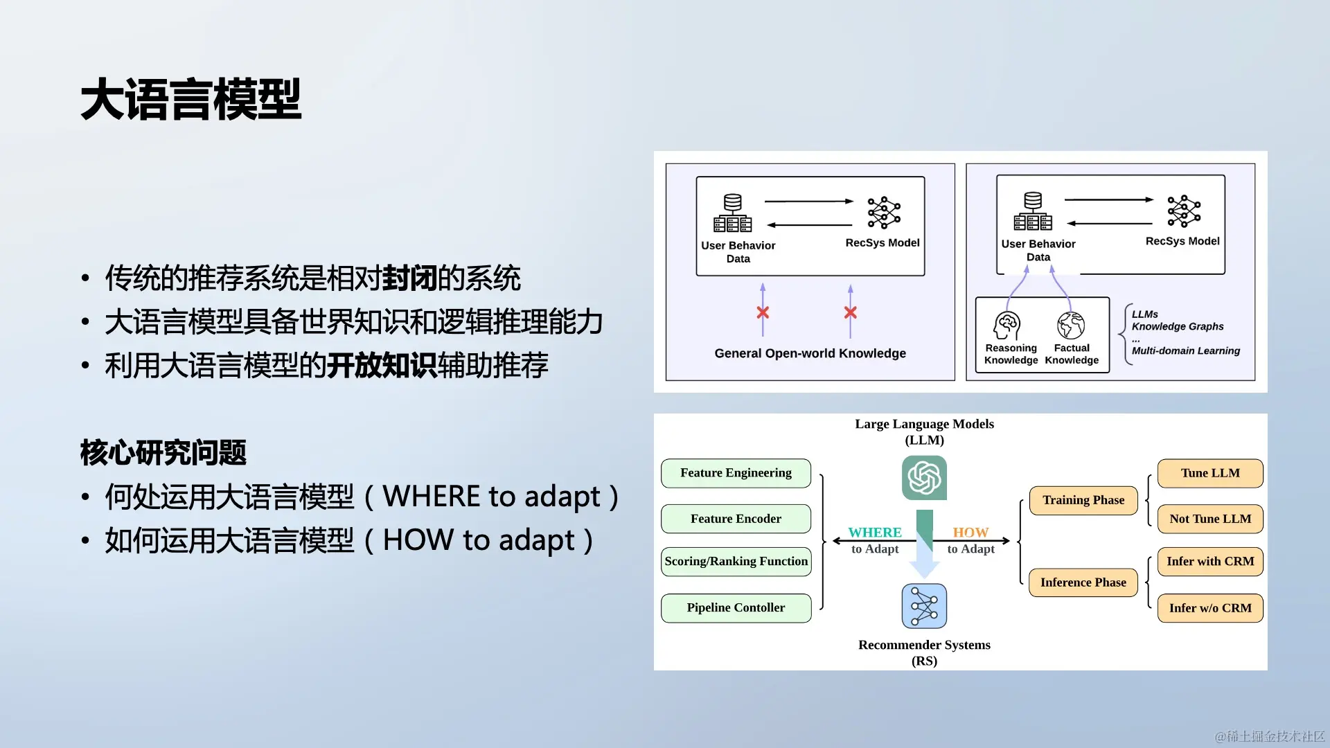 将大语言模型引入推荐系统可以分为“在哪引入”和“如何引入”两个问题。