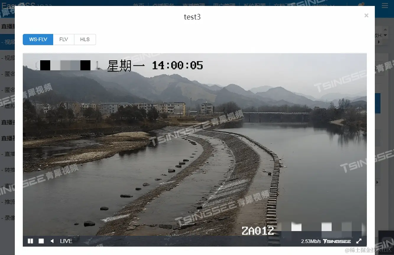5)最后即可在公网的直播间播放地址查看视频流,正常播放即推流成功。