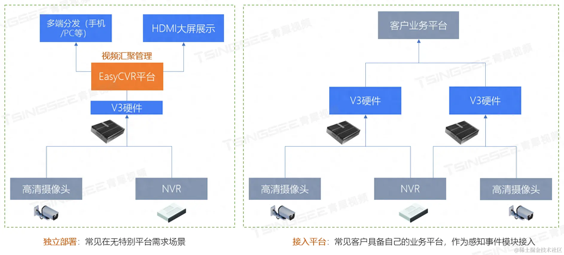 AI智能分析网关V3包含有20多种算法,包括人脸、人体、车辆、车牌、行为分析、烟火、入侵、聚集、安全帽、反光衣等等,可应用在安全生产、通用园区、智慧食安、智慧城管、智慧煤矿等场景中。将网关硬件结合我们的安防监控系统EasyCVR一起使用,可以实现多现场的前端摄像头等设备统一集中接入与视频汇聚管理,并能进行视频高清监控、录像、存储、检索与回放、AI智能分析、级联共享等视频能力与智能化服务。