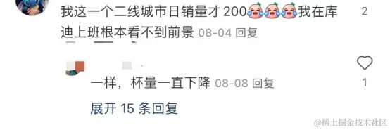 随着库迪频频提价,不少库迪加盟商开始在小红书、抖音等社交平台“现身”,表示其销量下滑明显。一位库迪的员工透露,“一个二线城市的日销量才200杯,在库迪上班看不到前景。”也有网友分享楼下装修三个月,开了一个月的库迪闭店的消息。