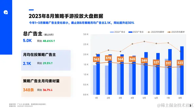 策略品类2023年8月全球策略手游投放数据: