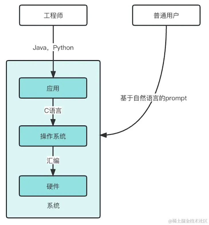 这里编程语言毋庸置疑就是Prompt,所以是否能够很好的理解Prompt的工作机制,书写出高质量的Prompt,将决定使用者是否能够高效的利用当前AI的能力,大家都听说过在软件时代存在着10X工程师的说法,那么在AI时代,系统的杠杆效用更明显,是否有可能产生100X工程师?我觉得是有可能的,而这样的工程师一定也是特别精通如何书写Prompt并与AI进行交互的人